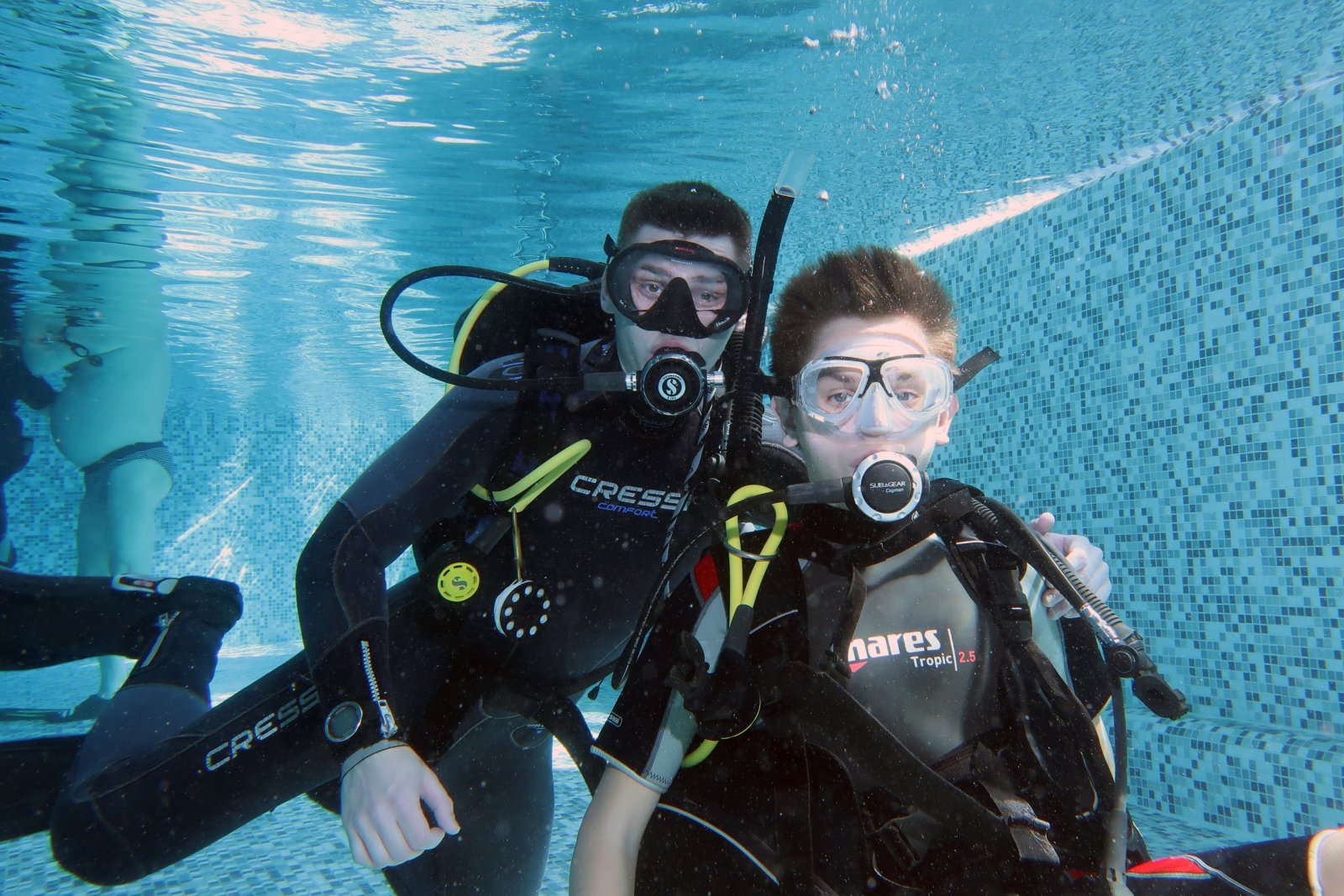 Между конкурсами и развлекательной программой в бассейне отеля Welna Eco Spa Resort для новичков были организованы пробные погружения с нашими опытными инструкторами.