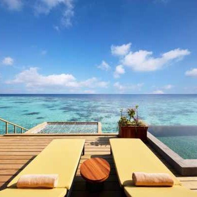 Представь себе, вы просыпаетесь утром и видите чистое небо и бирюзовое море, завтракаете, а затем выходите погреться на мальдивском солнце в шезлонге или гамаке над водой, не выходя из уединения своей виллы. Когда вы начинаете чувствовать жару, вы можете искупаться в бассейне или спуститься по лестнице, ведущей к лагуне, и окунуться в успокаивающую синеву. Вы можете расслабиться с прохладительным напитком или романтическим ужином на открытой террасе, прежде чем отправиться в свою главную спальню, где затишье Индийского океана и вид на закат помогут вам отдохнуть. Когда наступает новый день, вы начинаете все сначала.