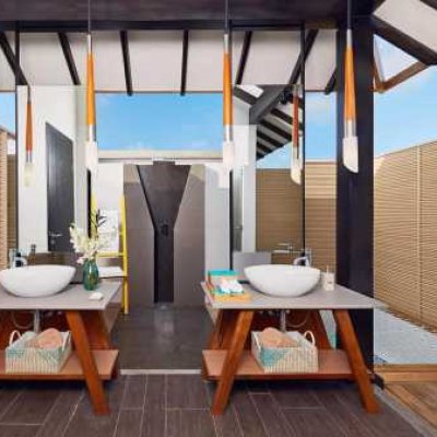 "Мы приглашаем вас познакомиться с изысканно спроектированной виллой, расположенной над океаном, с видом, который вы найдете впечатляющим. Вы сможете нырнуть в воду и увидеть дно, или поужинать в уединении на открытом воздухе на своей частной палубе. Войдя внутрь, вы попадете в сдержанно элегантное пространство, где уютная двуспальная кровать, крытая ванна на открытом воздухе и самые современные технологии.