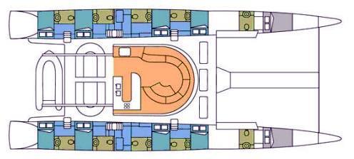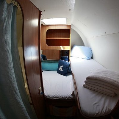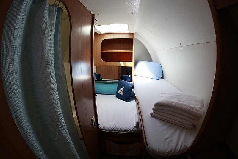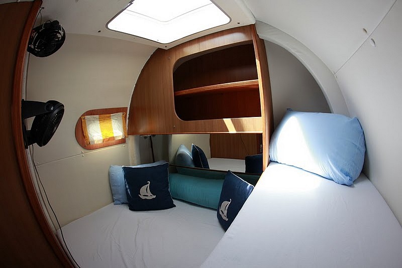 Всего на борту 10 кают, 2 – для членов экипажа и 8 двухместных кают для гостей.