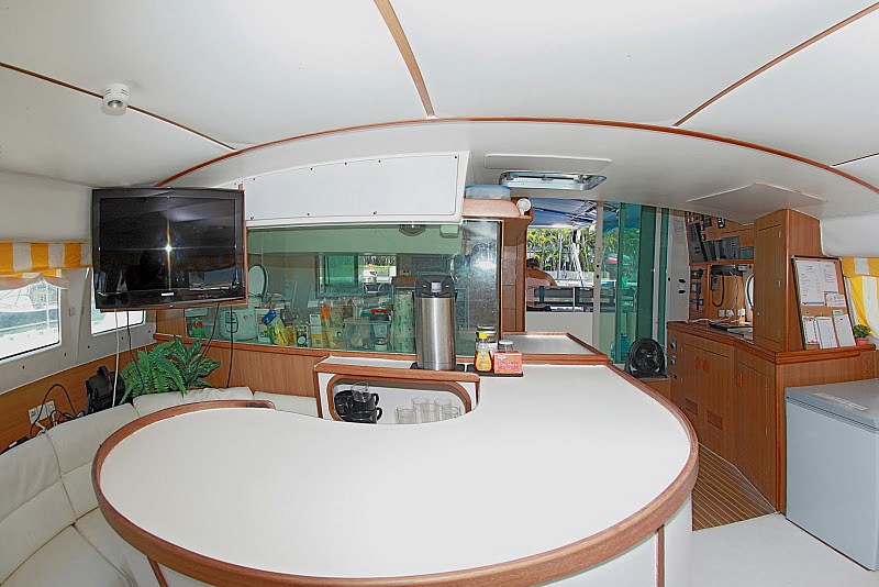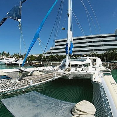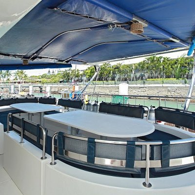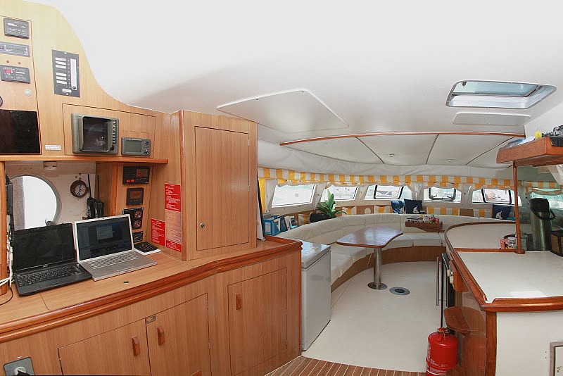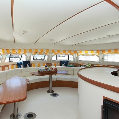 Катамаран оснащен двумя дизельными двигателями Perkins мощностью 130 л.с. каждый.