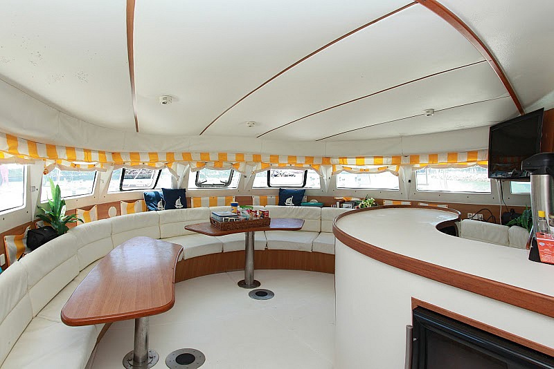 Дополнительное оборудование: LED панель, подключенная к компьютеру и к бортовой навигационной системе; 6 внешних динамиков на палубе и система Dolby Surround в основном салоне, состоящая из 8 динамиков; DVD-проигрыватель; iPod станция; рыболовные снасти: спининги, катушки для троллинга; 2 ружья для подводной охоты, надувные игрушки.