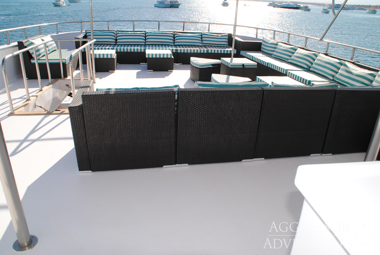 Флот Aggressor уделяет особое внимание безопасности на борту. На лодке есть противопожарное оборудование, аварийные плоты, спасательные жилеты,аптечка первой помощи, VHS радио, GPS.