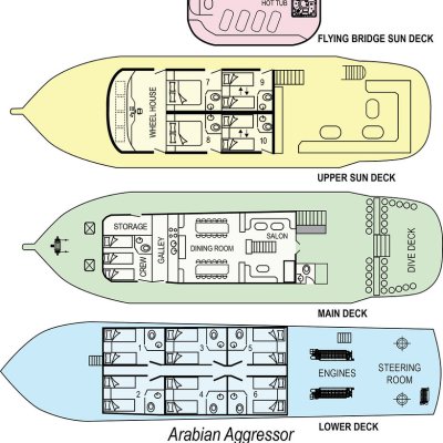 Яхта Arabian Aggressor - последнее дополнение флота Aggressor с маршрутами по еще совсем не исследованному дайверами Красному морю - предлагает два удивительных места для дайвинга в Красном море Джибути и Судан.С ноября по февраль яхта Arabian Aggressor выполняет сафари в Джибути.