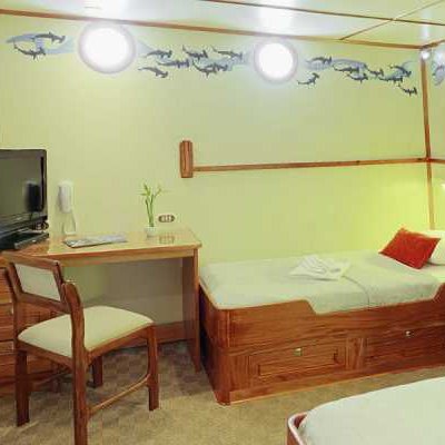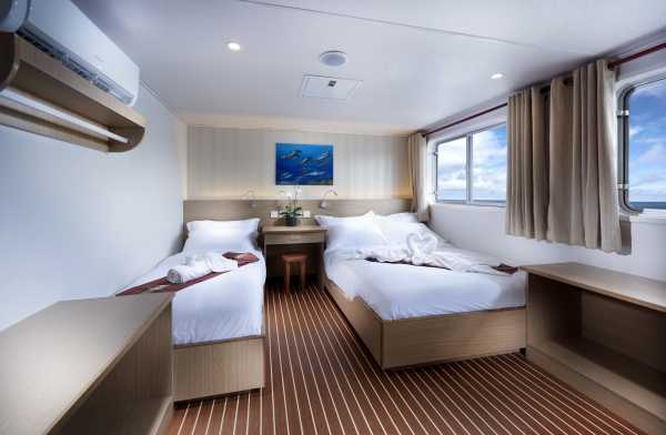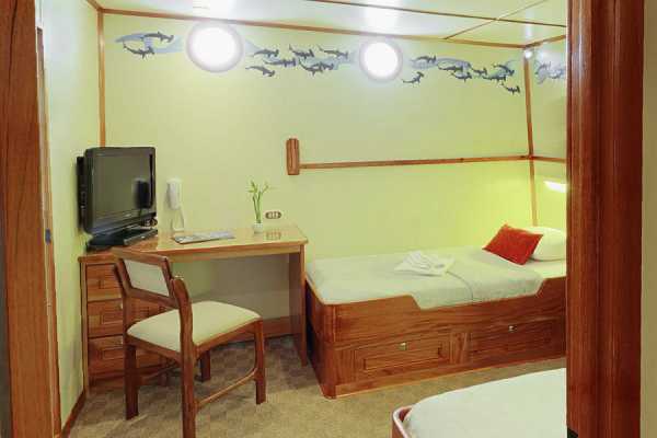 - 1 каюта Twin с двумя раздельными кроватями на одном уровне.