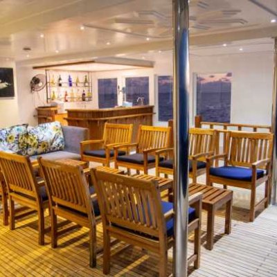 На верхней палубе есть открытая терраса и бар - идеальное место для отдыха с океанским бризом.