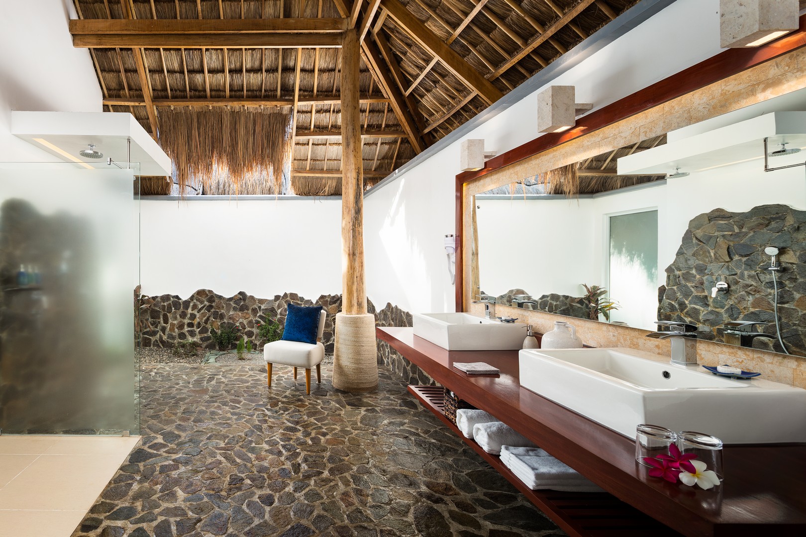 Комплекс спа-и-wellness подчёркивает тропическую терапию: водопады, сауна, outdoor- кабины. Есть йога-павильон, площадка «Warrior Gym».