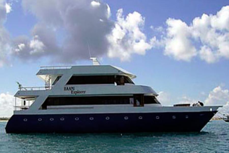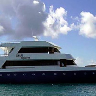 M/V Baani Explorer - это сафарийный катамаран, который используется для дайвинг-туре в Мальдивских островах, предлагая размещение в каютах для дайверов, которые исследуют множество подводных сайтов, включая глубокие подводные горы (seamounts).