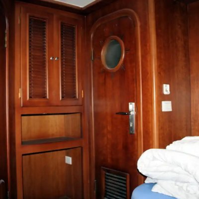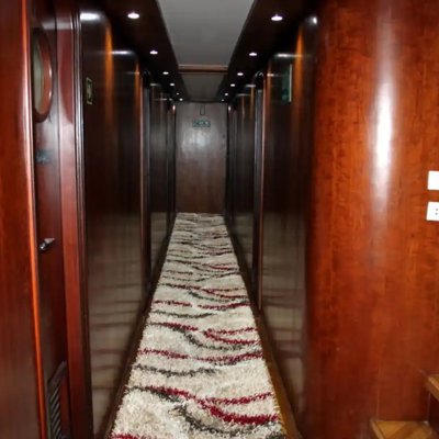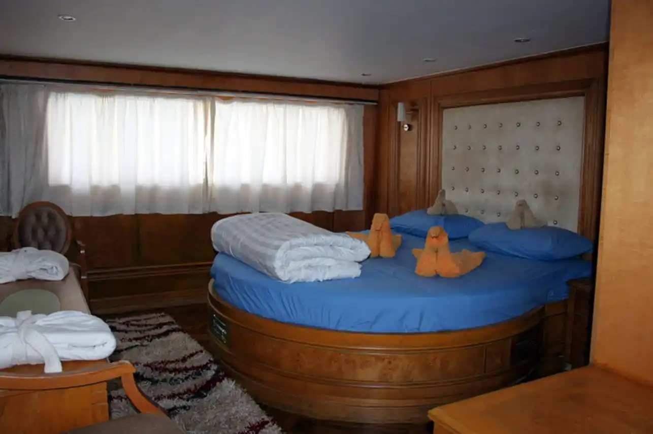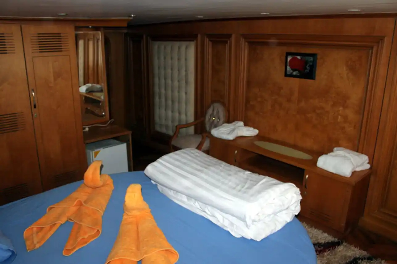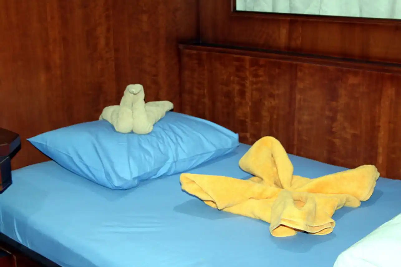 Эта деревянная яхта длинной 36 метров и шириной 8 метров расчитана на размещение 20 пассажиров в 8-ми двухместных каютах с односпальными кроватями и двух сьютах с двухместными кроватями.