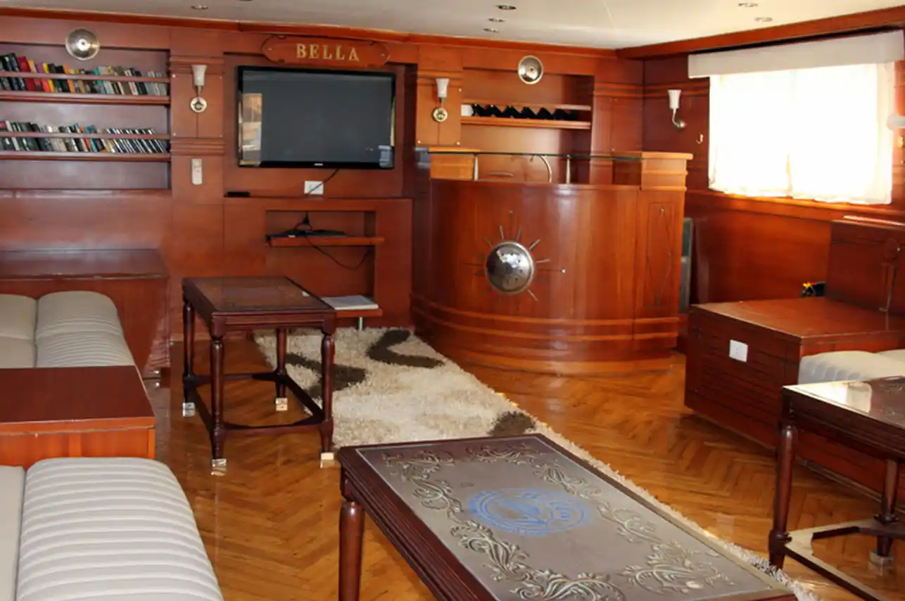 · 1 кают-компания с плазменной панелью, музыкальным центром, DVD, баром и кондиционером.