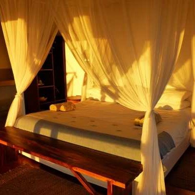 Во всех номерах есть ванная комната с раковиной и туалетом, большие 4-столбовые противомоскитные сетки, просторная терраса с наружным душем, креслами и шезлонгами, свой собственный гамак, подвесное кресло.