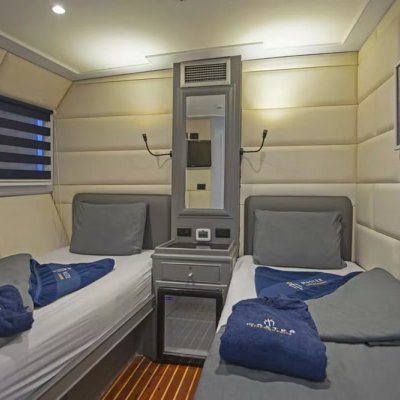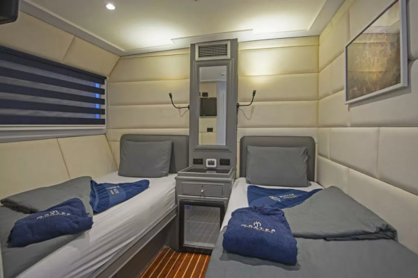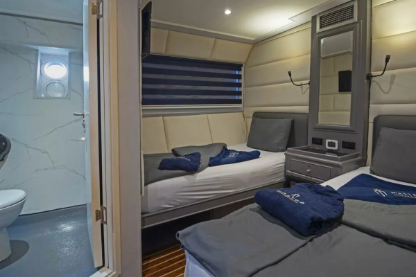 Классические двухместные каюты Twin предлагают комфортное размещение для двух человек на нижней палубе этого величественного судна.