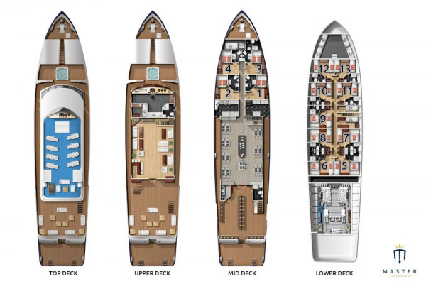 Обновленная в 2024 году, отмеченная наградами 41-метровая яхта Blue Horizon является флагманским судном флота Master и эталоном для всех других судов.