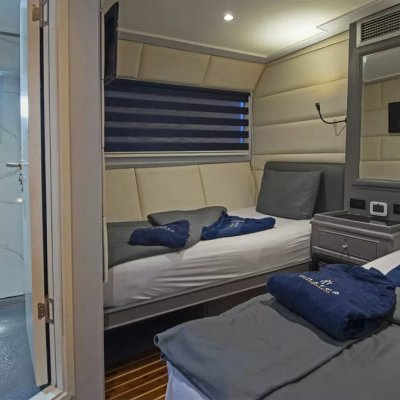 Эти каюты предлагают гибкое размещение для двух гостей с двуспальной или односпальной кроватью на выбор.