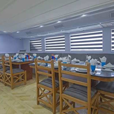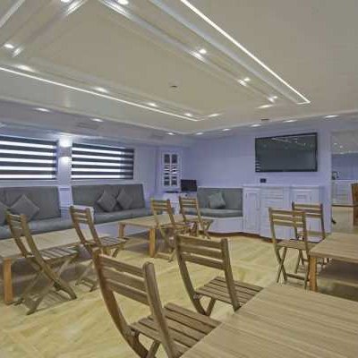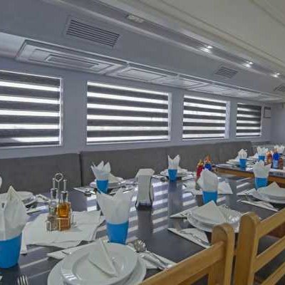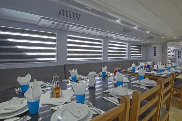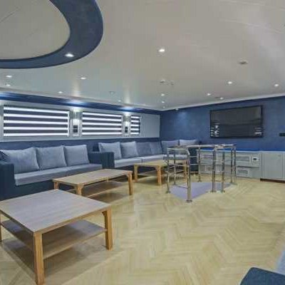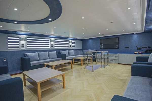 – просторный кондиционированный салон с диванами и столами