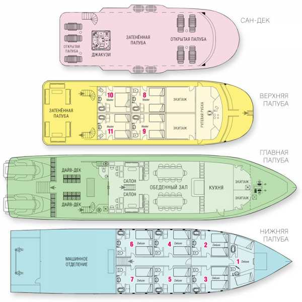 – 7 кают Deluxe (№1-7) на нижней палубе