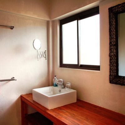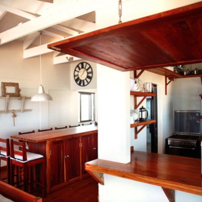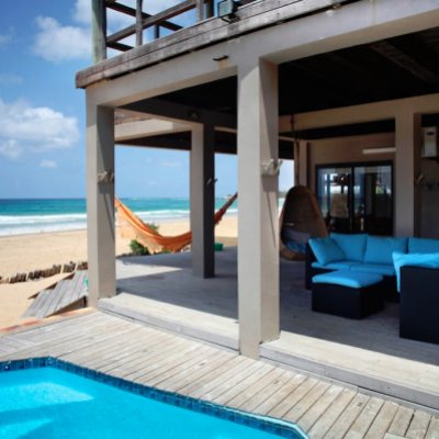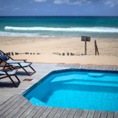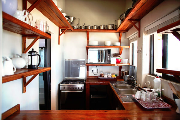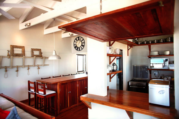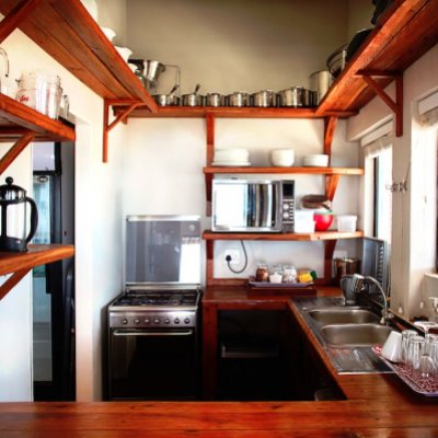 Для гостей есть милый маленький бассейн внизу и общая кухня наверху с большим балконом с видом на океан.