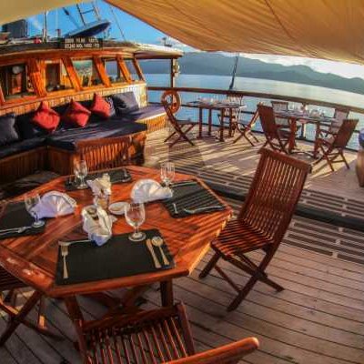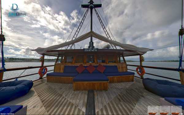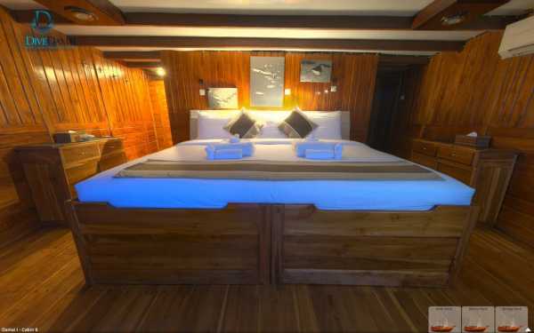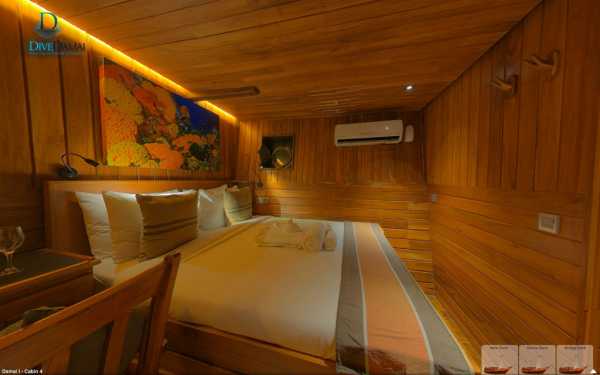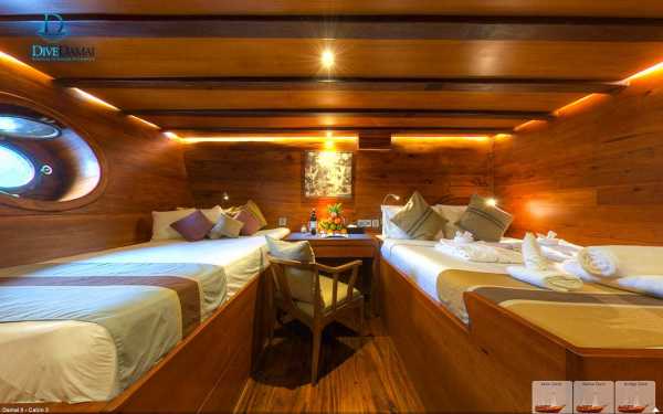Корпус Damai I состоит из трех просторных палуб, изящный интерьер всех индивидуальных и общих помещений отделан тиком. Кондиционированная кают-компания расположена на главной палубе и условно подразделена на ресторан с большим обеденным столом и салон отдыха с диванами, кофейным столиком и развлекательной аудио/видеосистемой.