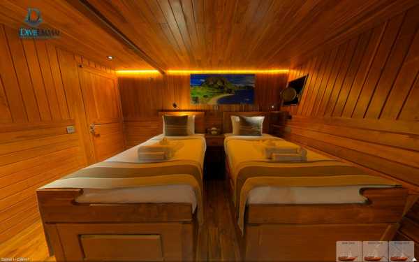 Всего на борту имеется 7 кают со всеми удобствами, 5 из них расположены на нижней палубе.