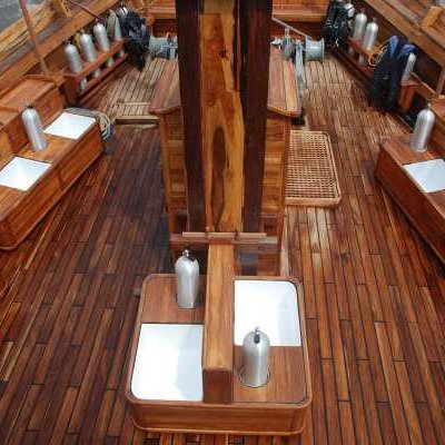 Полуоткрытая дайв-палуба находится в носовой части корабля. Поскольку группа на борту яхты небольшая, то каждому дайверу здесь предоставляется больше метра площади для установки баллона и хранения снаряжения в удобных глубоких ящиках. По периметру палубы расположены емкости для опреснения снаряжения. Дайвинг производится со специальных дайв-катеров, доступ к которым осуществляется по трапу с бортов яхты. Damai I предлагает специальную систему дайвинга a la carte без ограничения времени и количества погружений, и, в отличие от большинства других сафарийных яхт, не следует четкому временному графику.