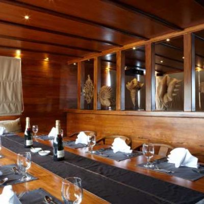 Отличительными чертами яхты является персональный сервис и непревзойденный комфорт. На 40-метровой яхте размещены всего 7 просторных кают и размер групп (максимум 4 дайвера на одного дайв-гида) - это придаст Вашим погружениям элемент уникальности и индивидуальности.
