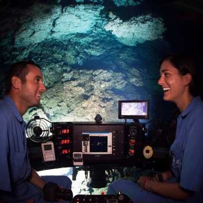 DeepSee - подводная лодка с давлением в 1 атмосферу, вмещает 1 пилота и 2-х пассажиров, может погружаться на глубину до 457 метров.