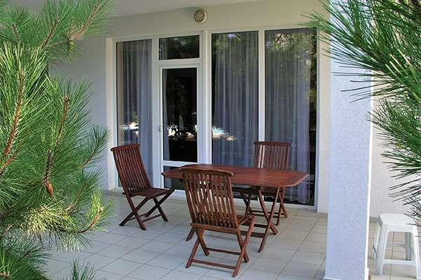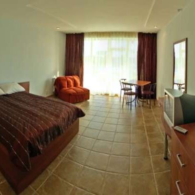 Апартаменты Виллы — уютные однокомнатные светлые студии с балконом (или террасой), с которого открывается прекрасный вид на бассейн или море. Средняя площадь апартаментов 35 кв. м. Во всех апартаментах есть одна двуспальная большая кровать или две раздельные кровати (ширина 110 см), а также раскладные диванчики (которые могут трансформироваться в удобную кровать шириной 110 см).