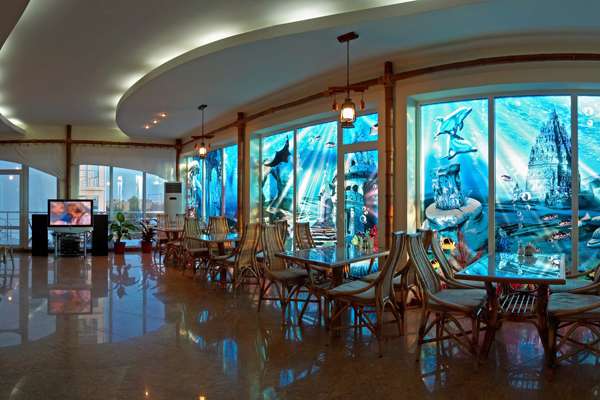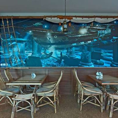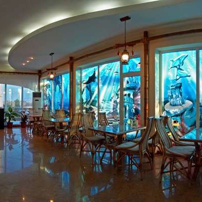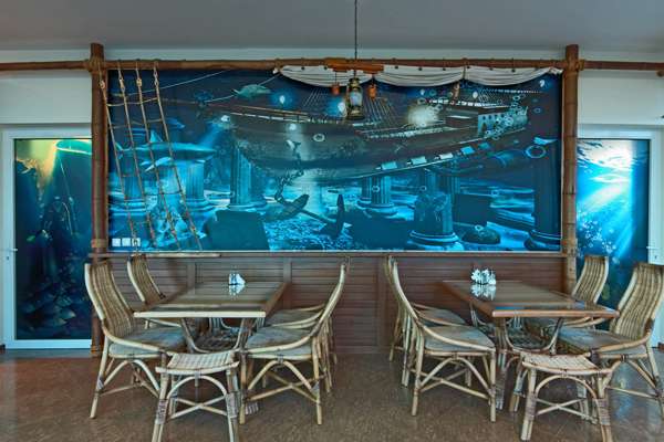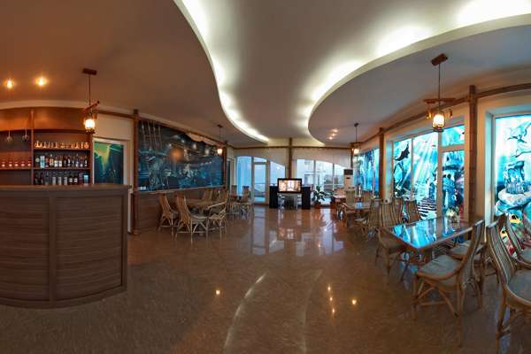 - 2 бассейна, один — тренировочный для обучения подводному плаванию (глубиной — 5м.), второй — плавательный бассейн-джакузи с противотоками и массажными зонами отдыха;