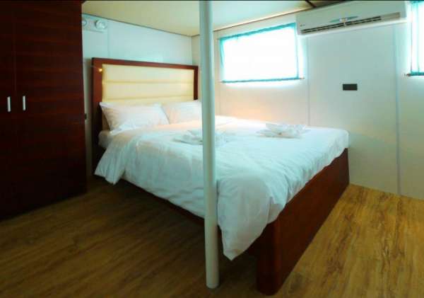 6 кают на верхней палубе. Более просторные, чем каюты на нижней палубе, с панорамными окнами и с двуспальными кроватями. Индивидуальное кондиционирование.