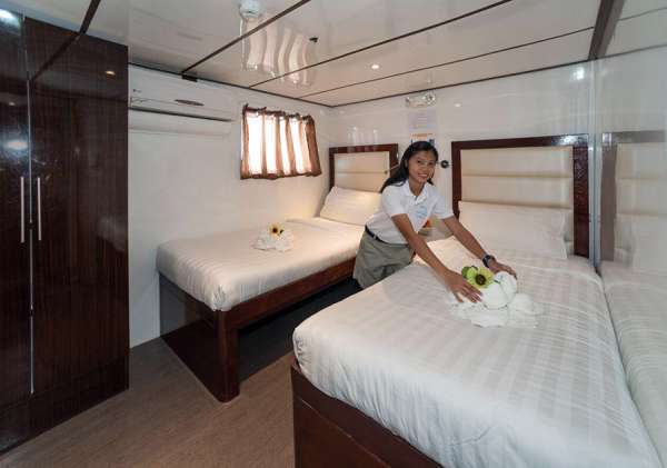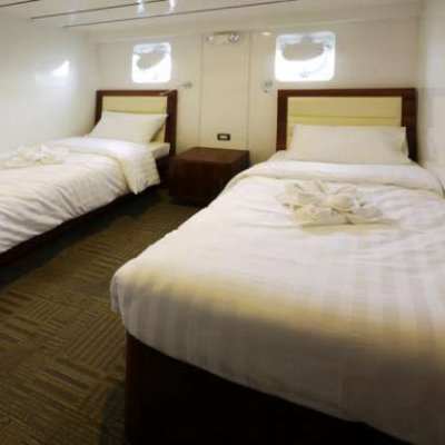 В каждой каюте: одно- и двуспальные кровати на одном уровне, туалет с душем, регулируемый кондиционер.