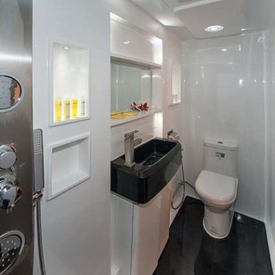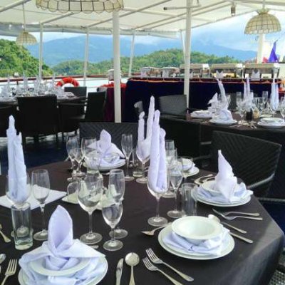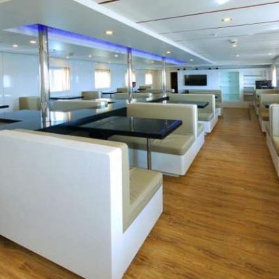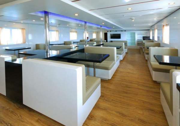 Кроме прочности и надежности, Дискавери Палаван может похвастатькомфортабельной кают-компанией и изысканной ресторанной зоной. Внутренняя отделка судна выполнена по всем требованиям современного стиля и яхтного дизайна.