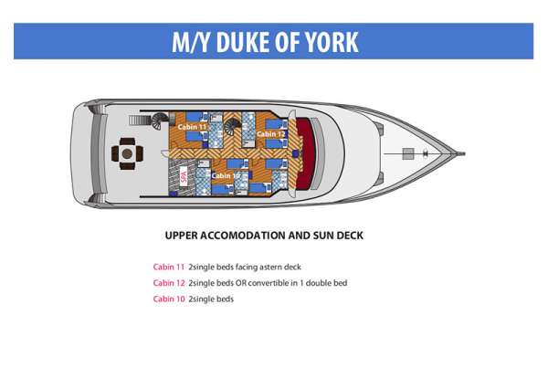 Яхта Duke of York была спущена на воду в 2010 году. Благодаря высоким стандартам дизайна, сочетая навыки архитекторов и инженеров и стандартам качества, эта яхта является идеальным решением для фантастических морских приключений на Мальдивах.