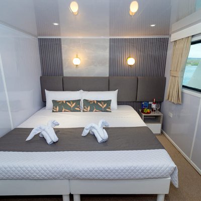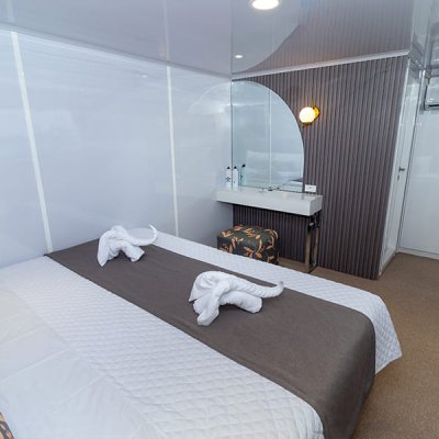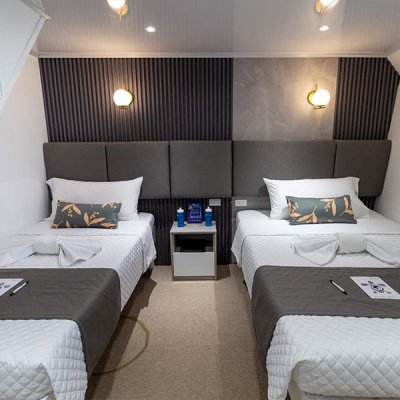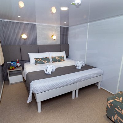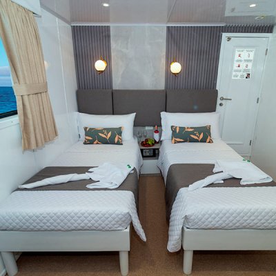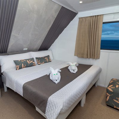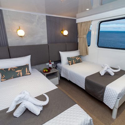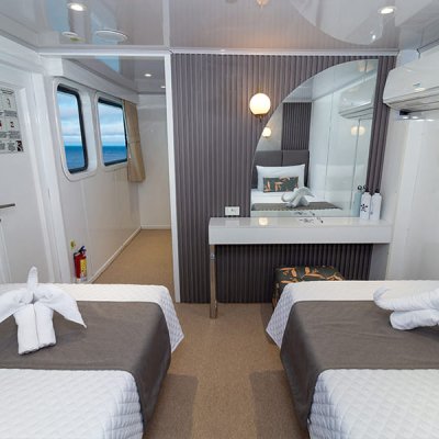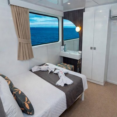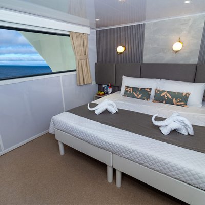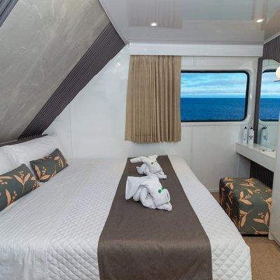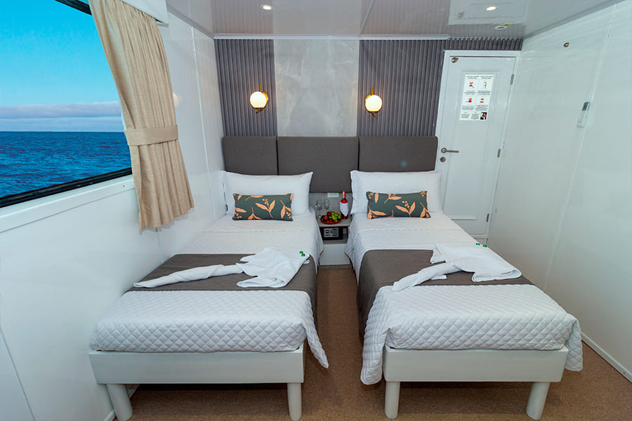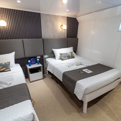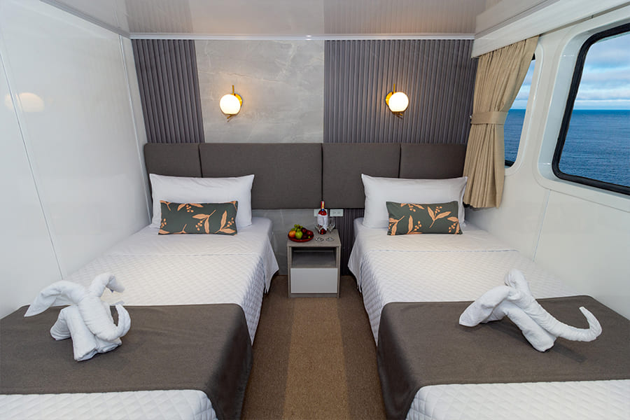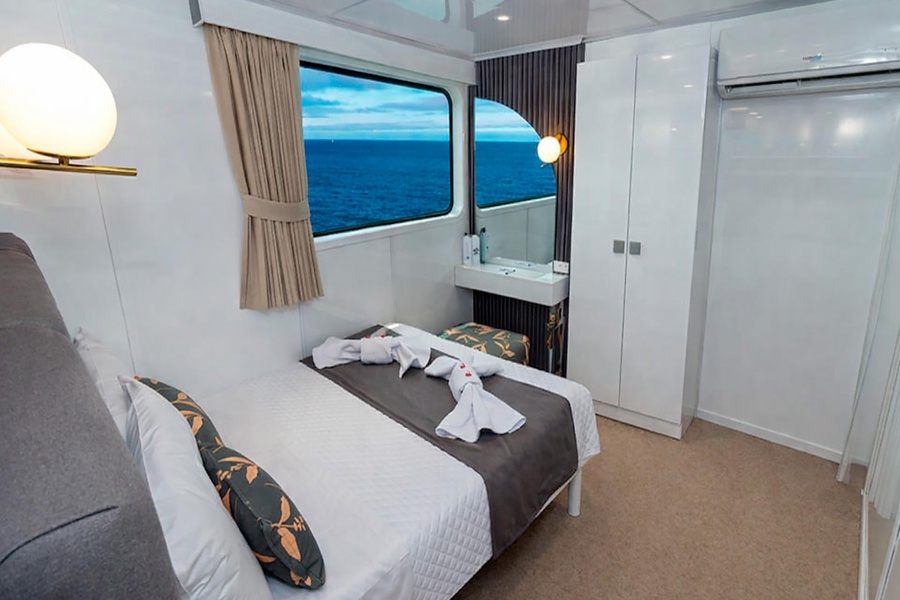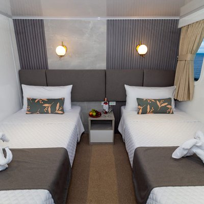 Расположены на верхней палубе, идеально подходят для пар или друзей. Имеются 4 двухместные каюты, которые можно трансформировать в каюту с двуспальной кроватью. Каюты оснащены большими окнами, которые наполняют помещение красивым светом и открывают захватывающий панорамный вид на океан.