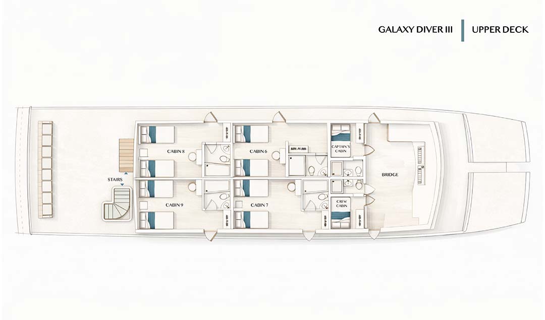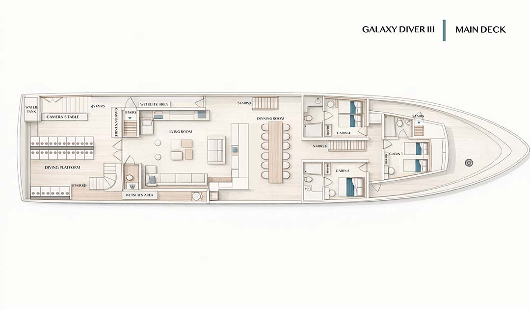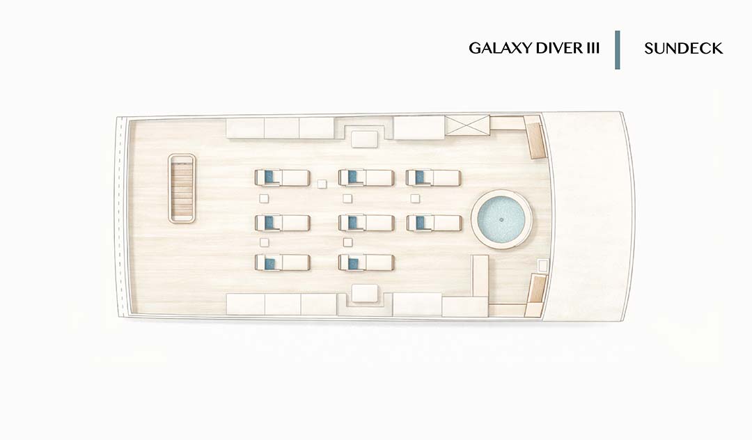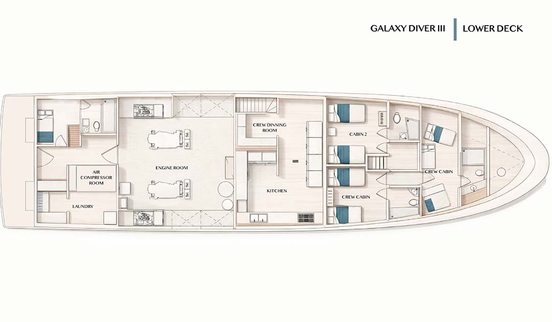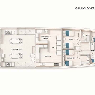 Galaxy Diver III сочетает в себе передовое оборудование, комфорт и индивидуальный подход, создавая эксклюзивный опыт путешествия, где каждая деталь продумана для того, чтобы улучшить ваше дайв-приключение на Галапагосах.