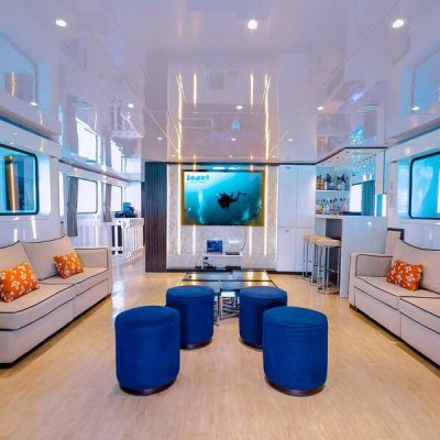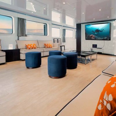 Расположена на главной палубе в кормовой части судна. Для вашего досуга на борту в гостиной есть телевизор, DVD-плеер, небольшая библиотека и настольные игры. Окна наполняют помещение красивым светом и открывают великолепный вид на море.