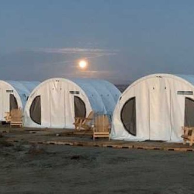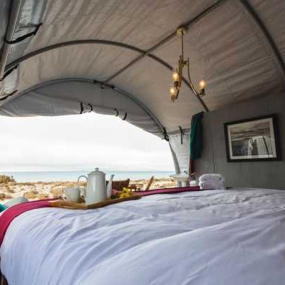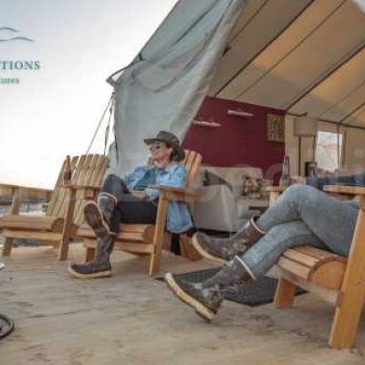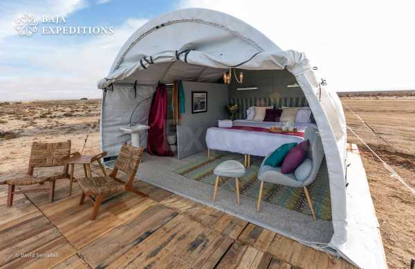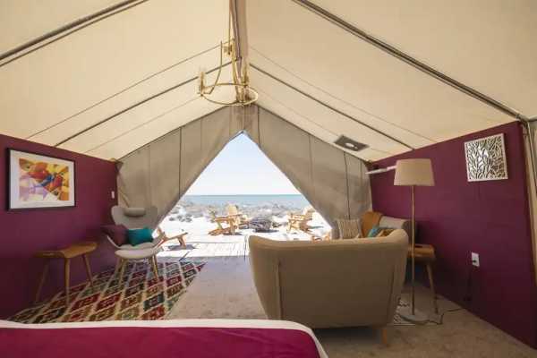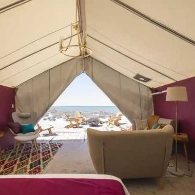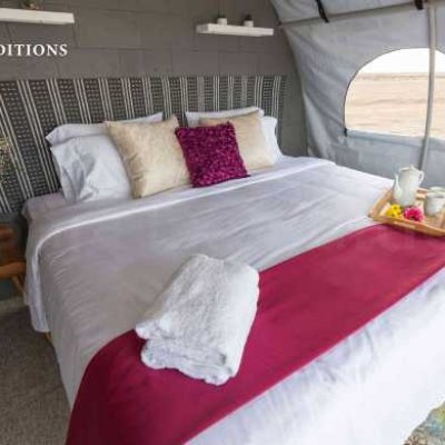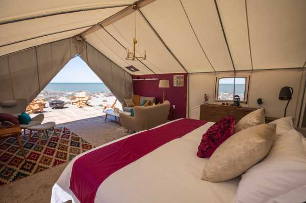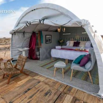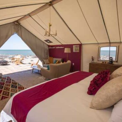Кемпинг в пустыне на краю океана не означает суровых испытаний! Скажем «НЕТ» крошечным палаткам с раскладушками, спальными мешками и парой общих туалетов и душевых на весь лагерь!