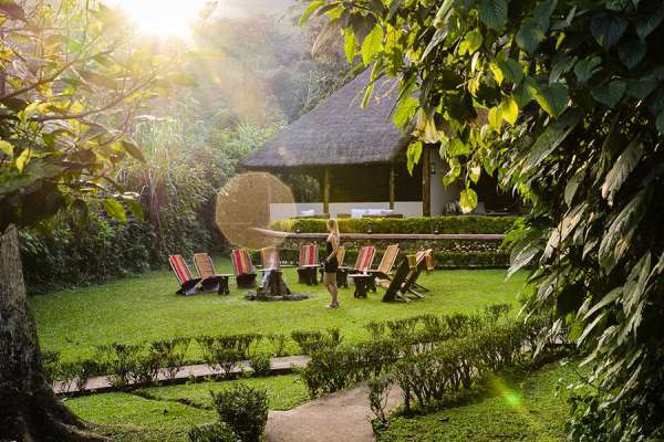 Главное здание комплекса состоит из лаунджа, бара и обеденной зоны с видом на джунгли. Здесь гостям подают все блюда, которые включены в стоимость проживания, и по вечерам разводят костер.