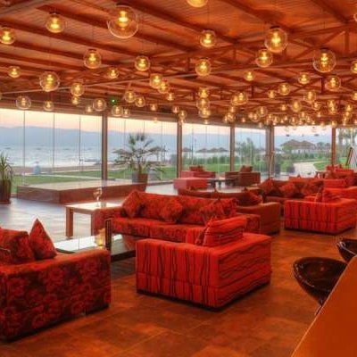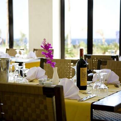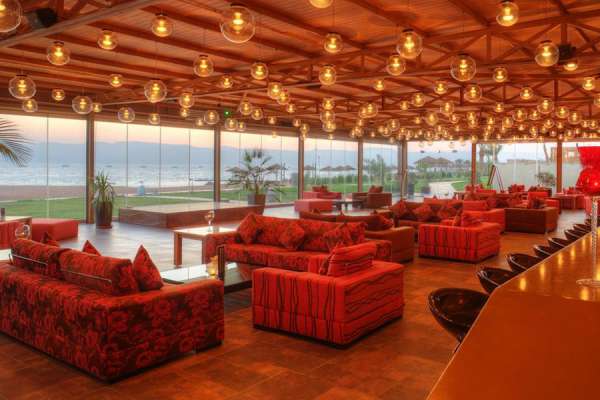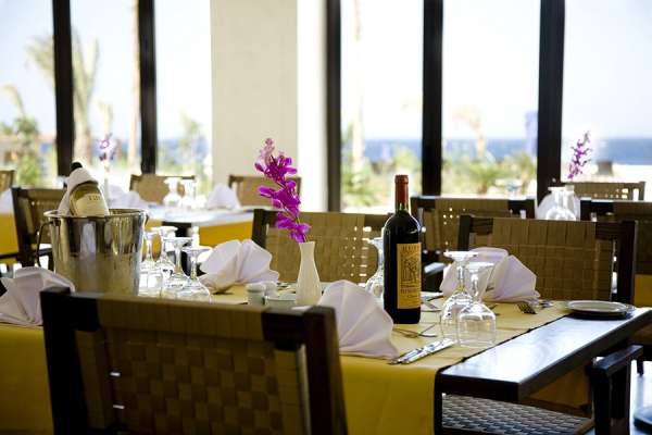 В ресторане Aziab с панорамным видом на Красное море подают блюда интернациональной и региональной кухни на открытом воздухе.