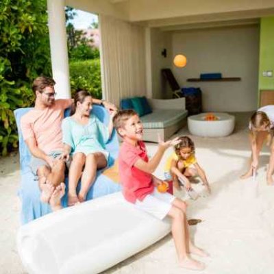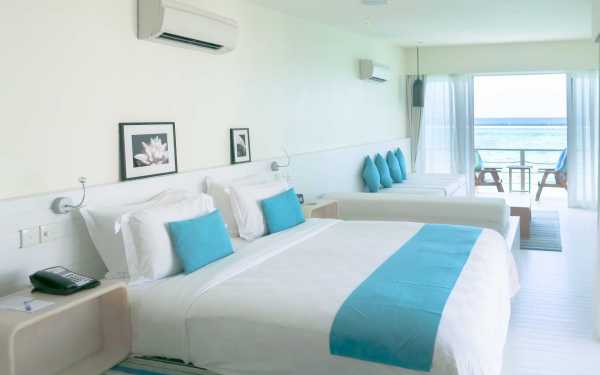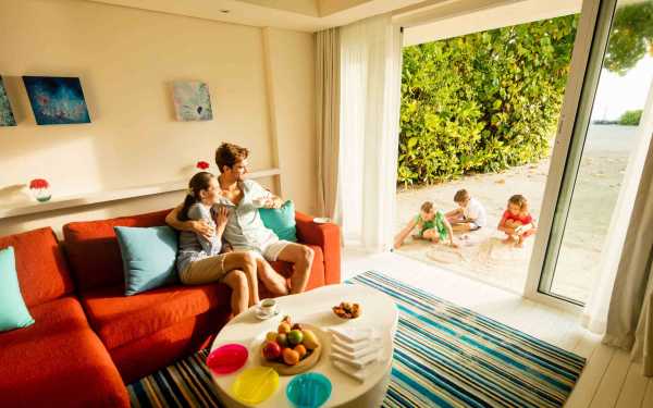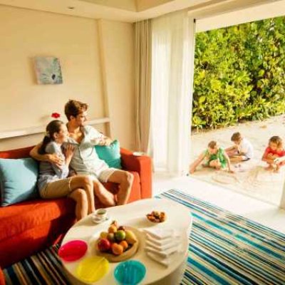 Домик с двумя спальнями на берегу для всей семьи нашего курорта Holiday Inn Resort Kandooma на Мальдивских островах — это просторная вилла, предназначенная для комфортного отдыха всех наших гостей. На втором этаже располагается основная спальня и спальня с кроватью размера king size и двумя односпальными кроватями; к каждой спальне примыкает отдельная терраса. На первом этаже – гостиная и терраса на открытом воздухе, с прямым доступом к пляжу, что способствует духу сплочения в семье.