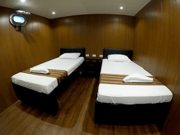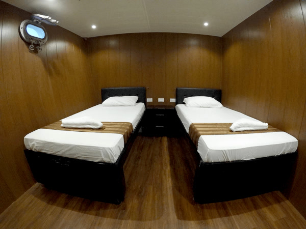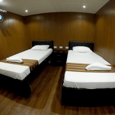 - 4 каюты Deluxe с двумя односпальными кроватями на одном уровне.