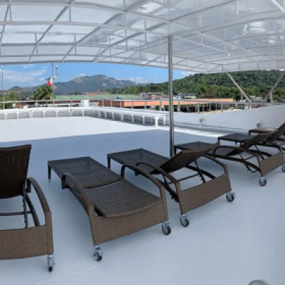Есть несколько зон отдыха, включая большой, красивый крытый лаундж, хорошо укомплектованный развлечениями, огромная солнечная терраса с мягкими шезлонгами и гамаками и открытый лаундж с баром самообслуживания.