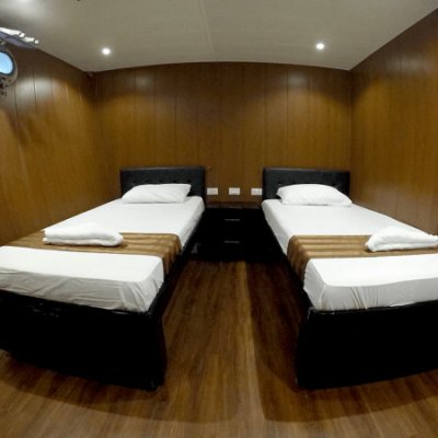 - 2 двухместные каюты Standard с двумя односпальными кроватями на разных уровнях.