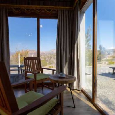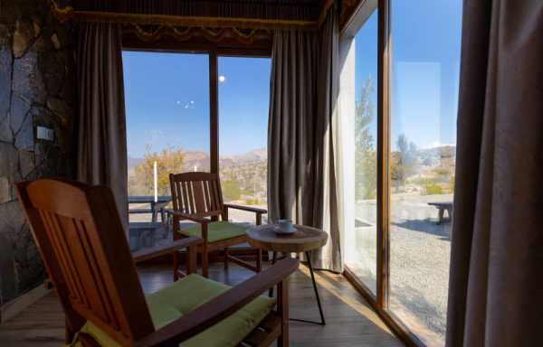 В этом шале есть гостиная зона со стеклянной дверью, ведущей во внутренний дворик, откуда открывается панорамный вид на каньоны Омана и закат. В каждом номере есть спутниковое телевидение и холодильник. Также в распоряжении гостей ванная комната.