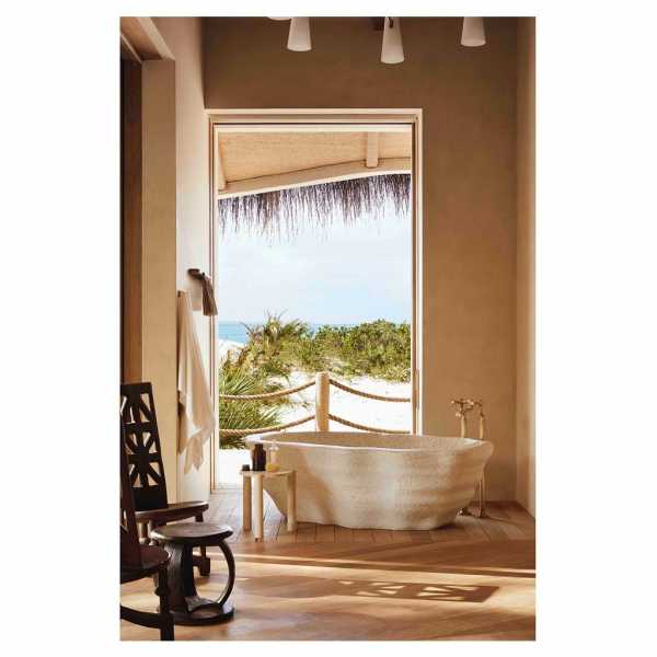 В Kisawa коллаборация песка и морской воды острова является важнейшим строительным блоком. Обеспечивает естественную фактурную отделку фасадов зданий: раствор подается в 3D-печатную машину для создания компонентов напольного покрытия, плитки и кладки.