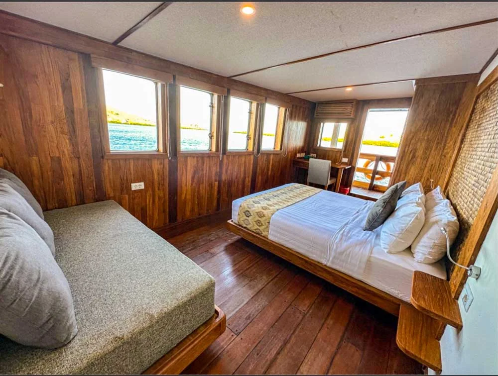Komodo Sea Dragon располагает 6 каютами, рассчитанными на 12 гостей, при этом с возможностью разместить до 16 человек без ущерба для комфорта. Диваны в каютах легко превращаются в дополнительные спальные места, что идеально подходит для размещения троих гостей или семейного отдыха. Ощутите персонализированную роскошь в этих тщательно продуманных пространствах. Яхта Komodo Sea Dragon — это идеальный выбор для путешествия по архипелагу Комодо.