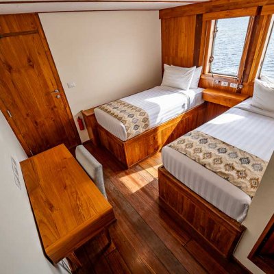 Созданная для удобства и комфорта, двухместная каюта на главной палубе обладает видом на море, собственной ванной комнатой, двумя односпальными кроватями, письменным столом, индивидуальными лампами для чтения и кондиционером. Идеальный выбор для гостей, ищущих уютное и функциональное морское путешествие.