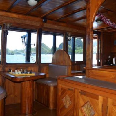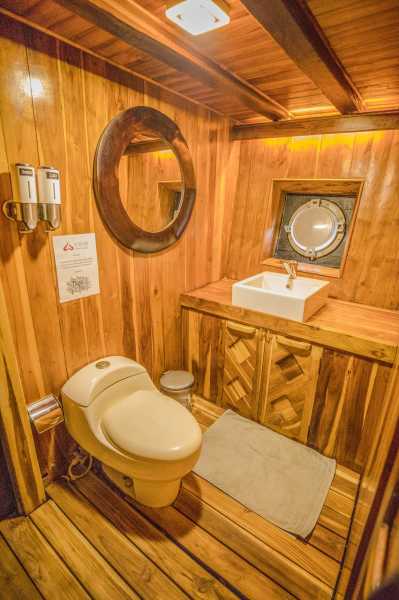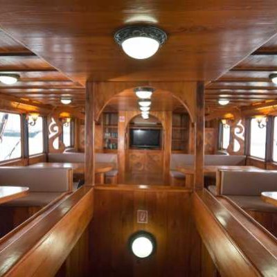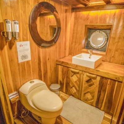 На яхте 7 двухместных кают, каждая с индивидуальным кондиционером и отдельной ванной комнатой.