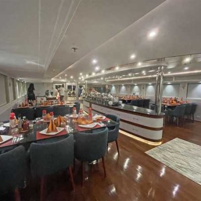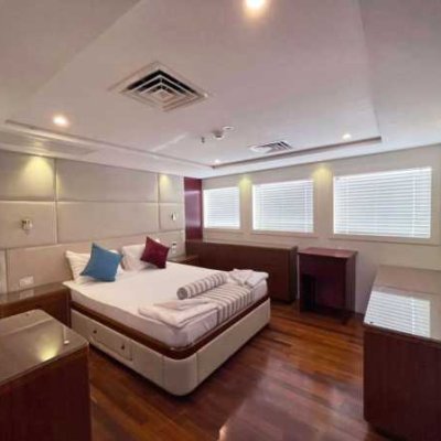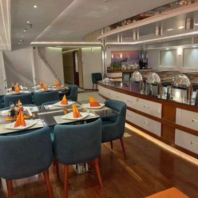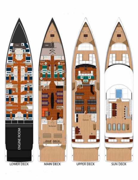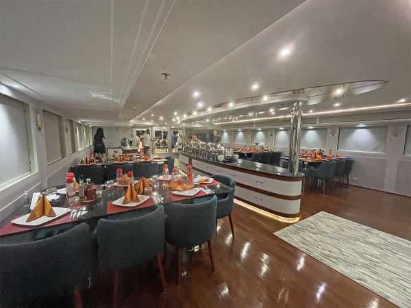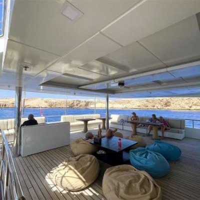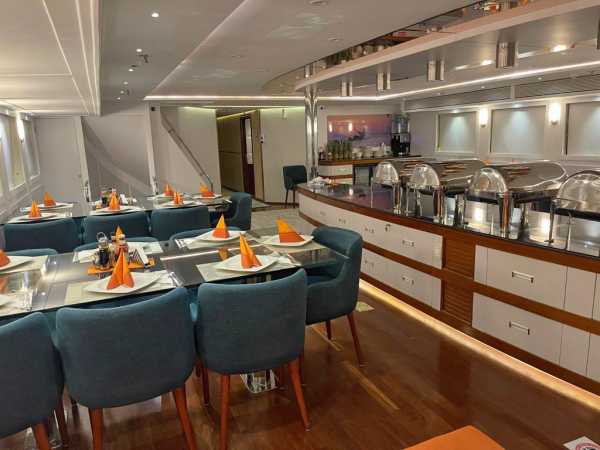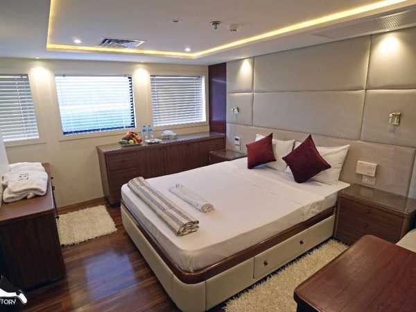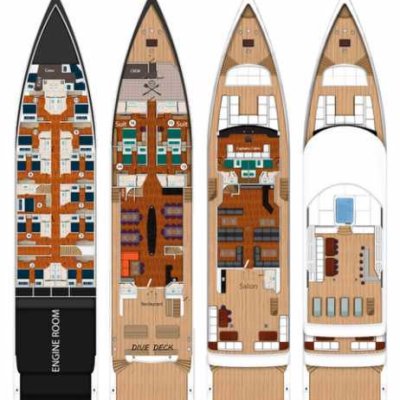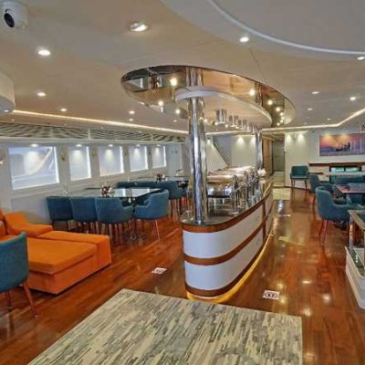 Просторная корма для посадки и высадки, большое пространство, предназначенное для занятий дайвингом и переодевания, столовая с невероятным шведским столом, где великолепно представлено богатое меню, внимательное обслуживание, опыт отборного экипажа, просторные каюты со всеми удобствами - все способствует роскошному приему гостей.