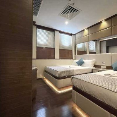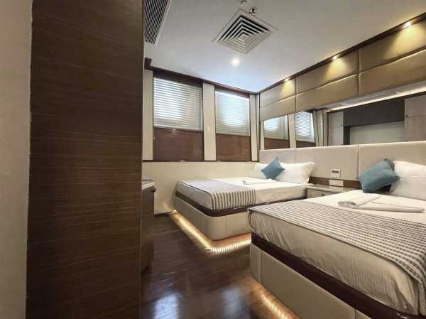 2 каюты с двумя односпальными кроватями и возможностью трансформации в двуспальную кровать.