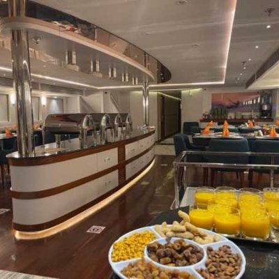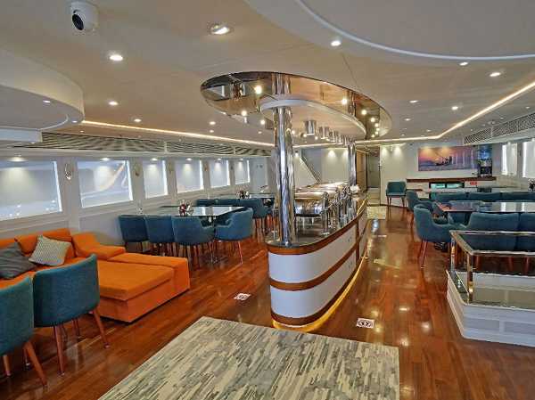 Ресторан с лаунж-зоной на главной палубе.